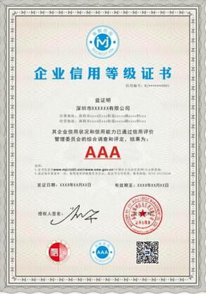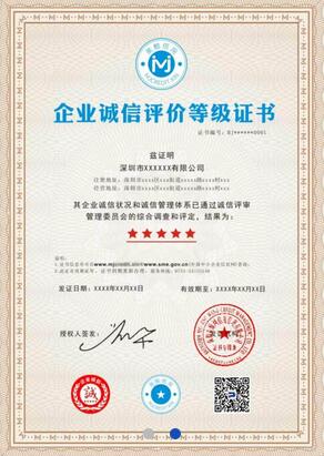 企業(yè)誠(chéng)信評(píng)價(jià)等級(jí)證書