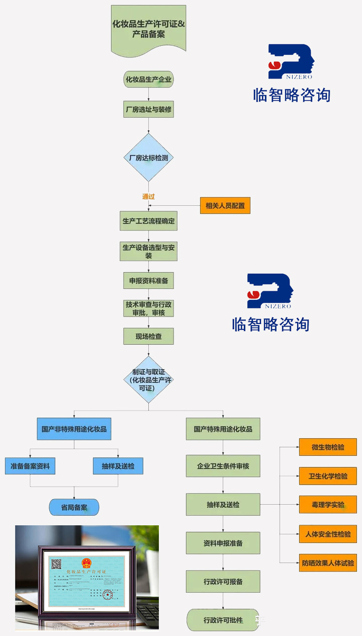 準備好以上文件,即可申請化妝品生產(chǎn)許可證。申請受理后,審批人員將下廠檢查,所以生產(chǎn)現(xiàn)場及文件記錄等也要按照相關要求做好準備。